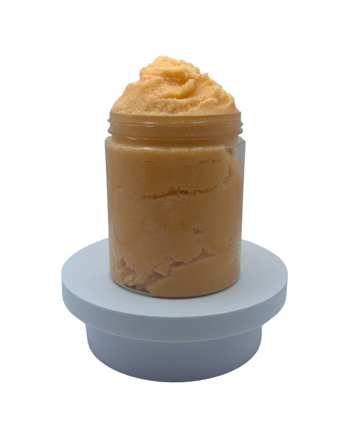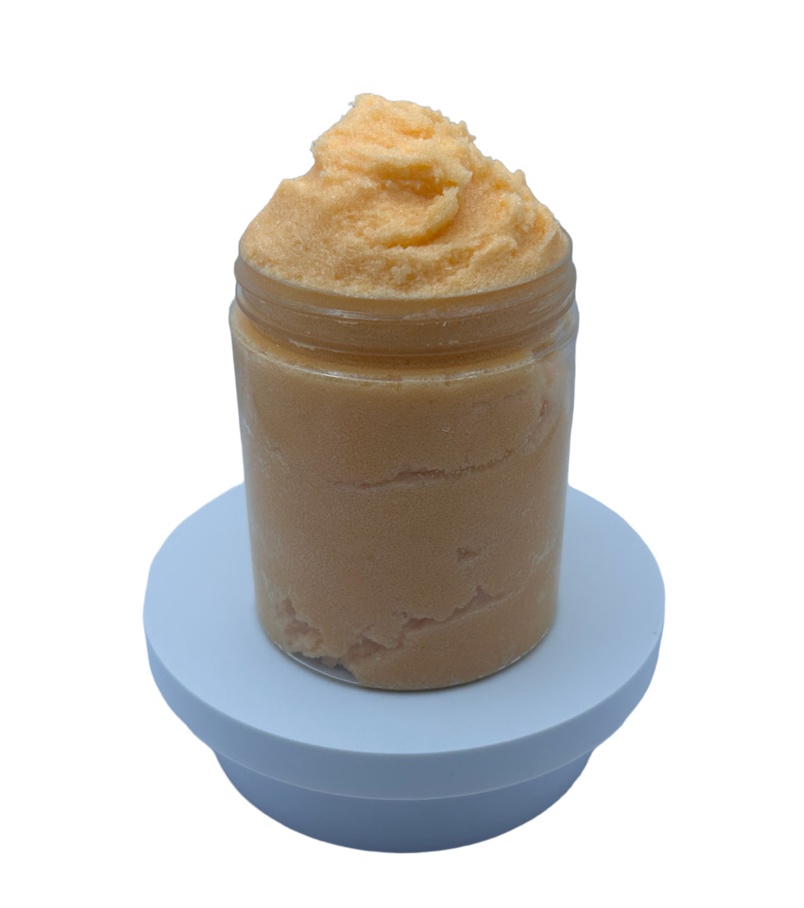 Ingredients: Apricot Kernel Oil, Grapeseed Oil, Golden Jojoba Oil, Sweet Almond Oil, Sunflower Oil, White Sugar, Mica Powder, Foaming Bath Butter, Phenonip Preservative, Fragrance Mongo Papaya.