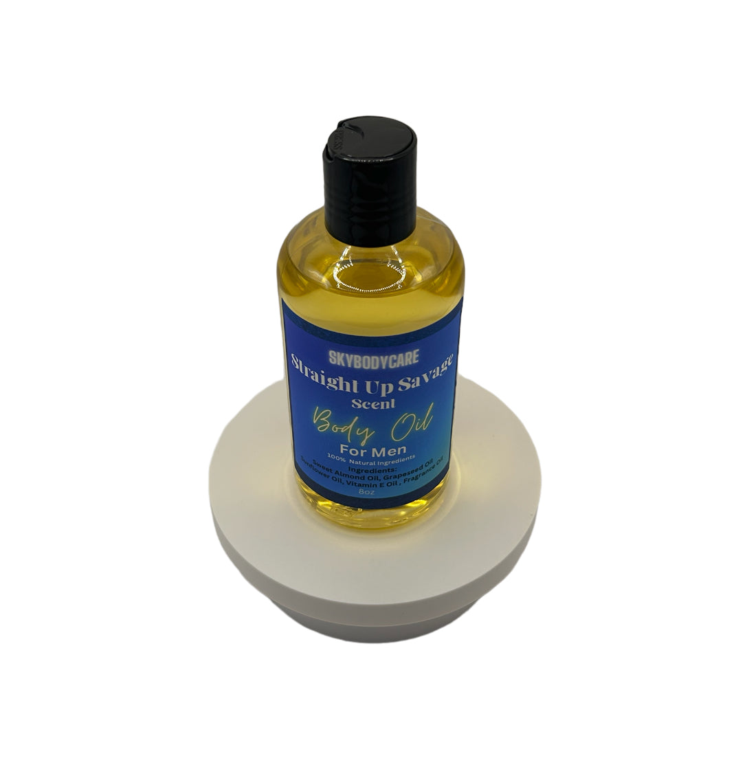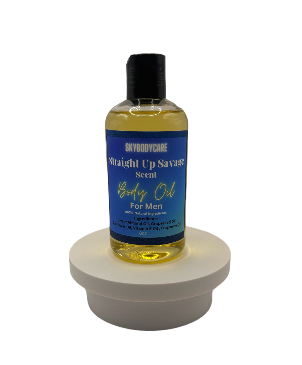 Ingredients: Sweet almond oil, Grapeseed oil, Sunflower oil, Vitamin e oil, Fragrance Straight up savage