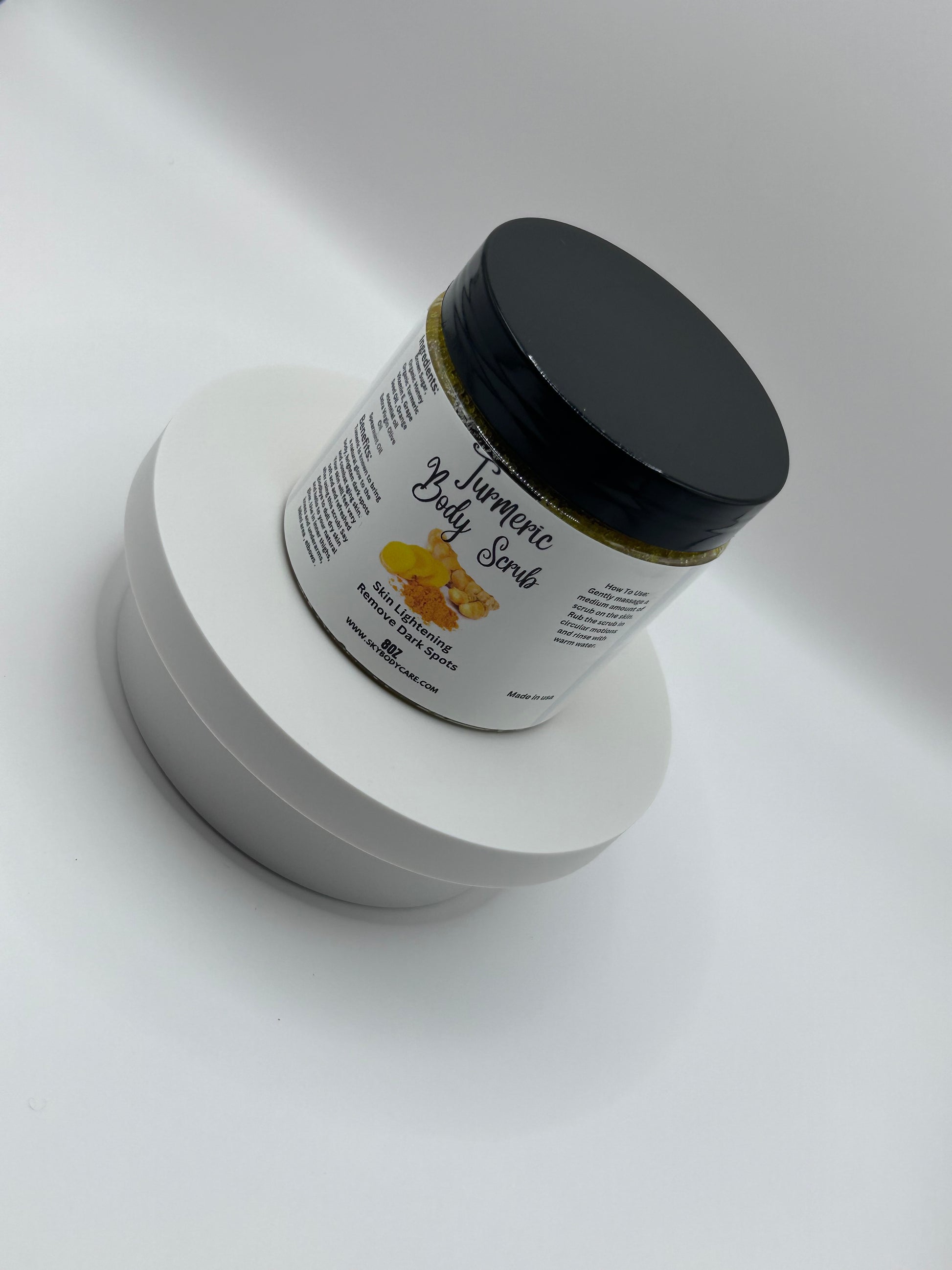 Tumeric is known to bring a natural glow to the body, brighten dark spots and combat aging skin. Your skin will feel very soft and and refreshed after using this scrub! Say goodbye to dull dry skin and hello to your natural glow Use in inner thighs, knees and underarms, bikini area , elbows .